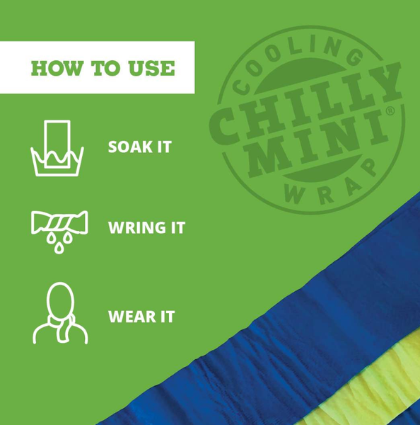 Chilly Mini Towel is 3-3/4"x 29" and made from the same materials as the large towels, but in a unique small size. It’s ideal for any outdoor activity, from team sports, yard work or a workout